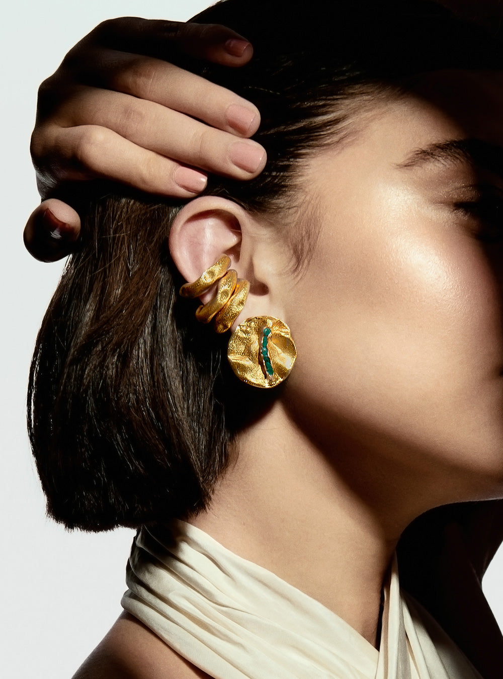 Están bañadas en oro amarillo de 24 Quilates. Para garantizar la vida útil de las joyas de bronce, no las exponga al agua. Por favor, retire sus joyas mientras hace ejercicio, se bañe o nade, y evite el contacto con perfumes, lociones o productos para el cabello.